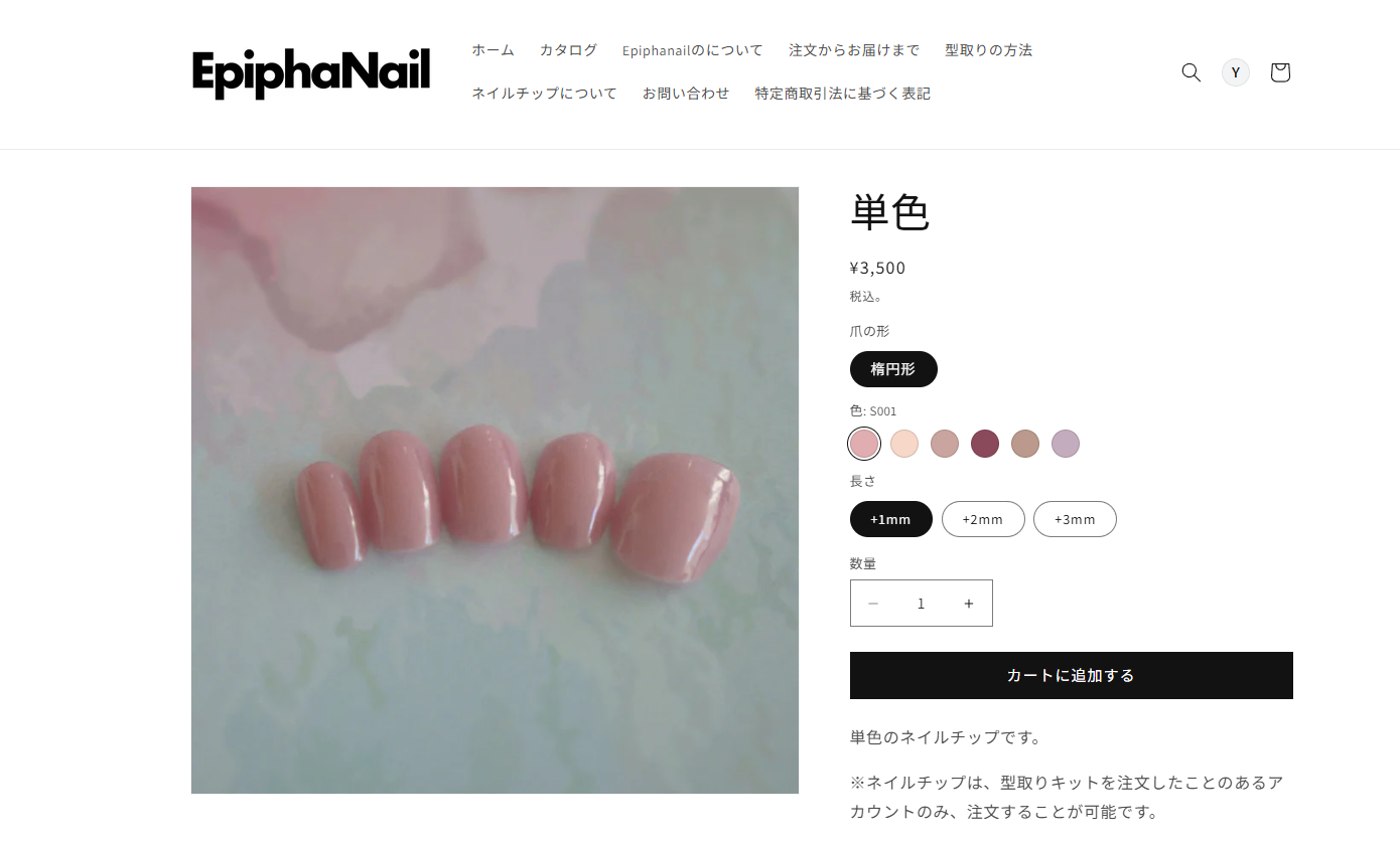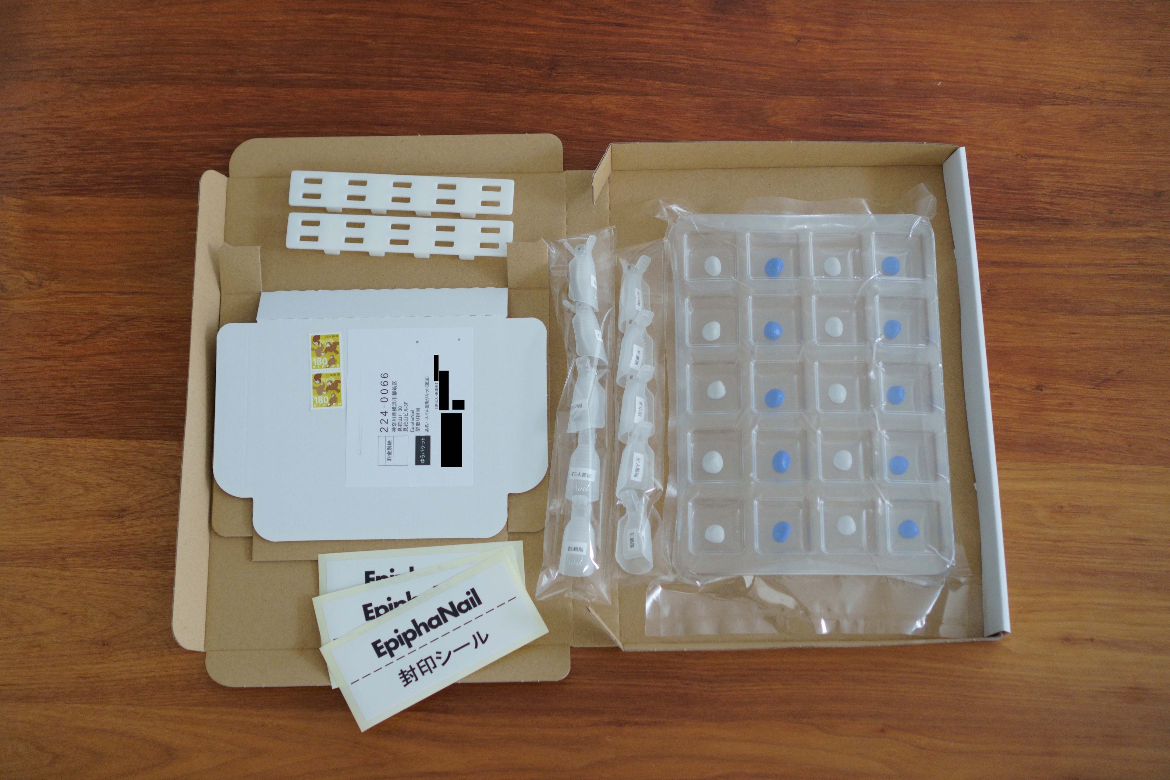 Epiphanailのサイトから、型取りキットとネイルチップのセットを注文します。